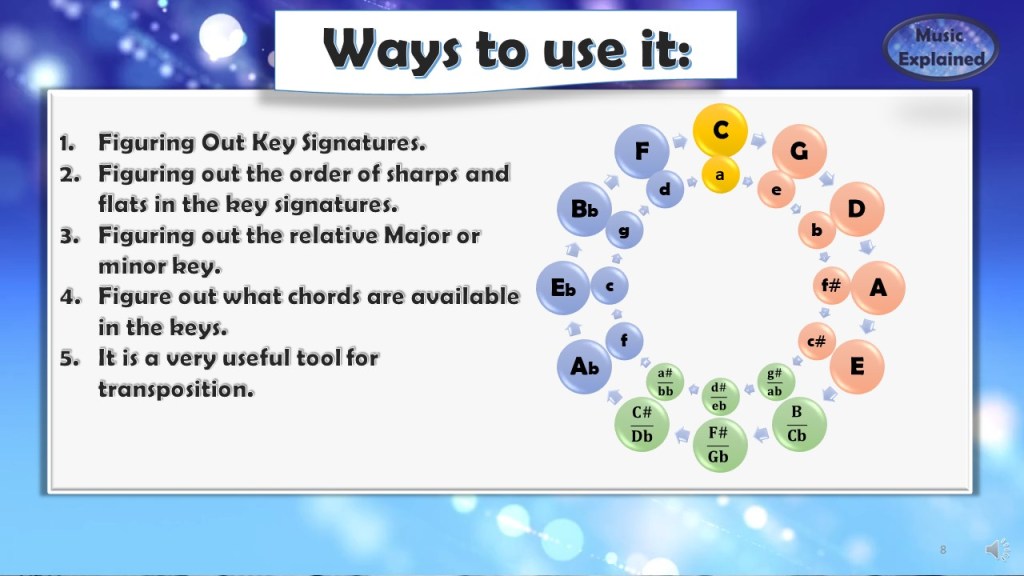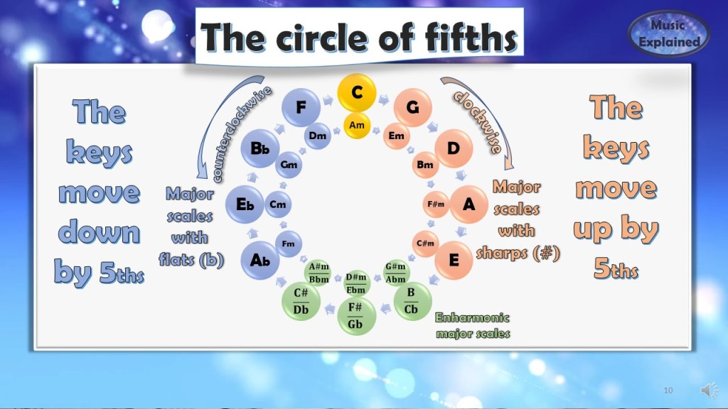 The piano keyboard is the easiest way to see and hear them in the “music” order: